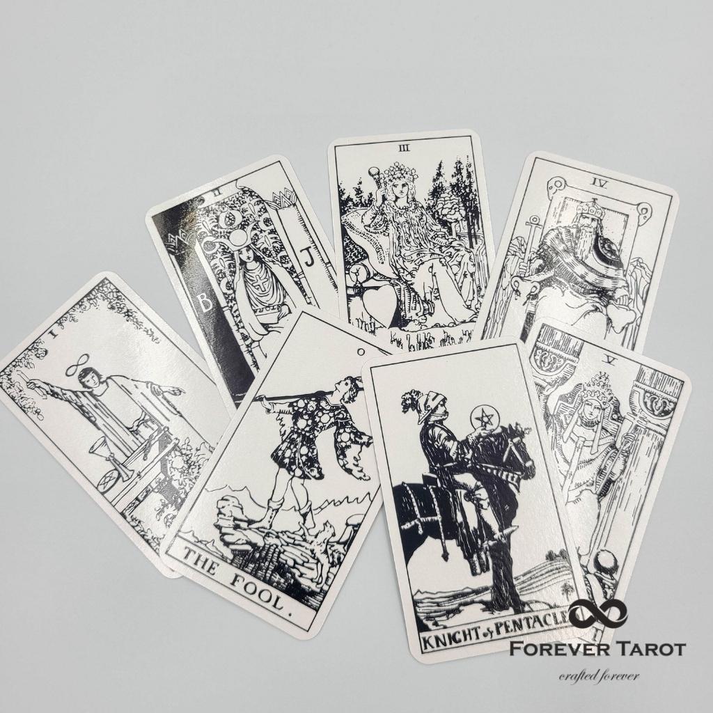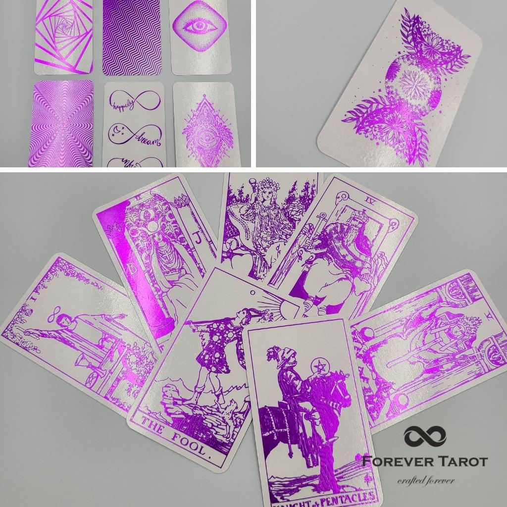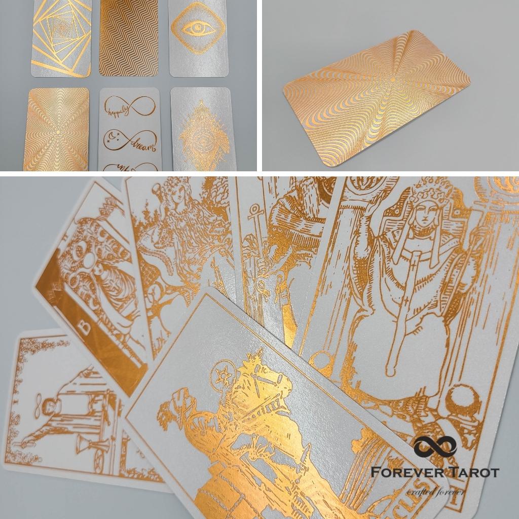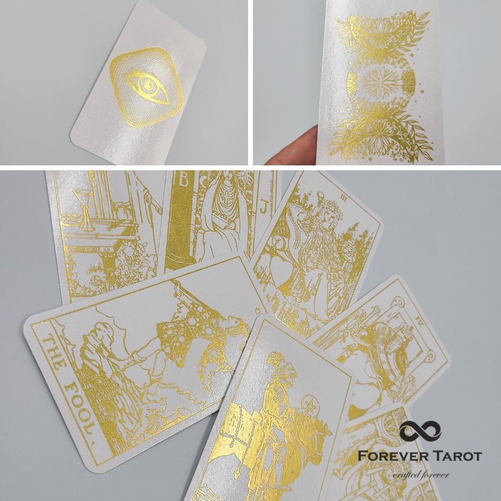 We offer the best of both worlds; premium 350gsm ivory paper and foil engraving Waite-Smith tarot decks. Who doesn’t like this combination? Truly loved and original combinations are now available on ForeverTarot.com